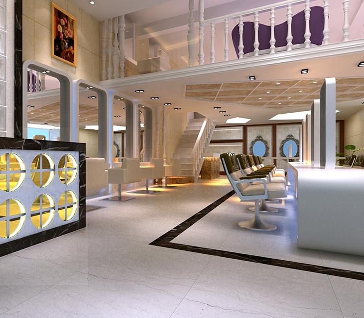 美发店的前台区应该体现出美发店面的整体设计风格,可以说是我们店面的一个亮点,整体设计可以用玻璃不锈钢及大理石来体现出其独有的面貌。店面设计效果图上的前台背景要体现出店面的品牌效应。