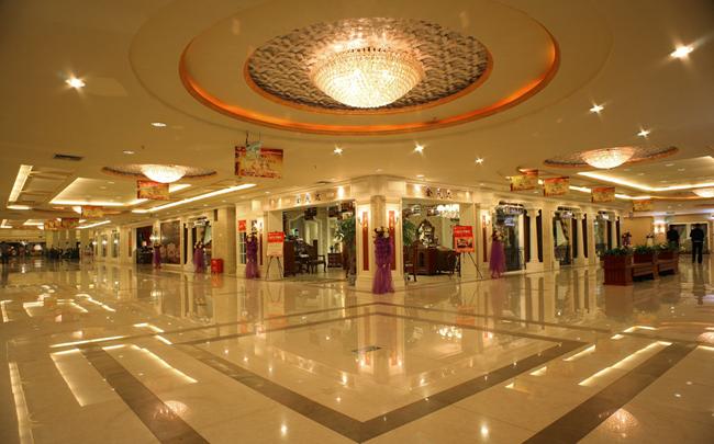 商场内由于商品本身及其包装已有丰富多彩的颜色,室内界面一般宜用不太强烈且具有对其他色有广泛适应性的色彩,以更好地突出商品的形象,强调商品的色泽.商场中的界面色彩明度高、彩度低、货架、柱子的色彩明度低于界面,彩色高于界面。