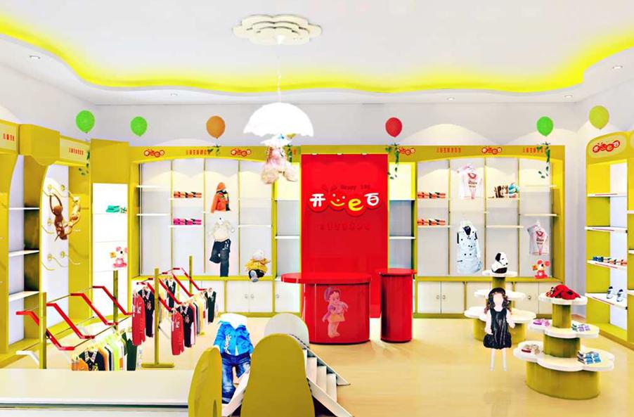 童装店面设计的组成而言,虽然应将婴儿区与学步儿童区加以大致区分,但为使尺寸及风格让家长们容易了解,因此,在平面设计计划上有必要做纵向及横向交叉的配置。此外,其店中所设品牌最好能够从店门望去即可获得辨识。