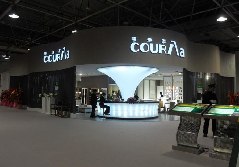 展位越开阔,越可能吸引观众。台式设计往往容易形成心理障碍,应尽量避免。
