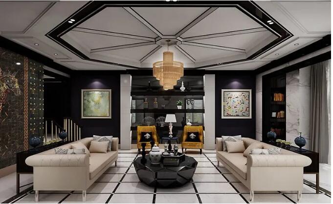 事实上,客厅的天花板并不是越复杂,就越优雅。例如,简单勾勒石膏线的天花板可以表现出低调奢华和丰富的品味。