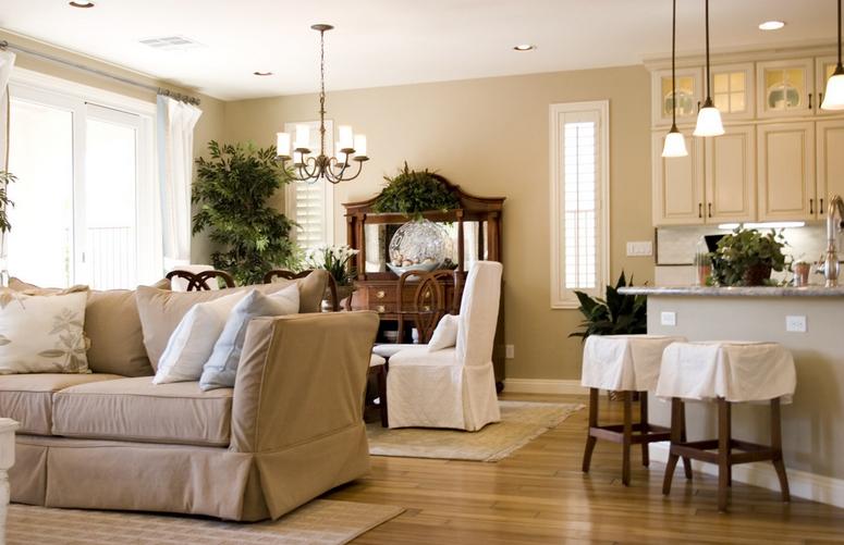 室内装修使用的色彩亦影响住宅的风水,中国人以红色为最吉利颜色,表示温暖、愉快、吉祥、力量。黄色是光明、高贵权威、长寿的象征,故宫中的服饰及宫殿装修的主色调则使用金黄色和朱红色以表示高贵与权威。桔黄色代表神圣,和尚传统上穿桔黄色的袈裟,代表了佛教的至高无上。绿色代表生命、春天、宁静与清新,是室内装修中常用色调,室内配以绿色地毯和盆景,会使人心平气和。白色和黑色,表示悲哀和迟钝。按中国人的生活习惯、民俗、信仰、忌讳考虑配色,尽量不用黑色、纯蓝、深灰、中灰、纯白等颜色。