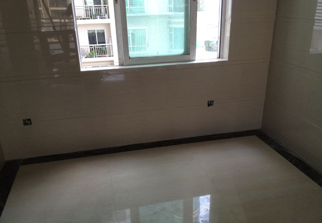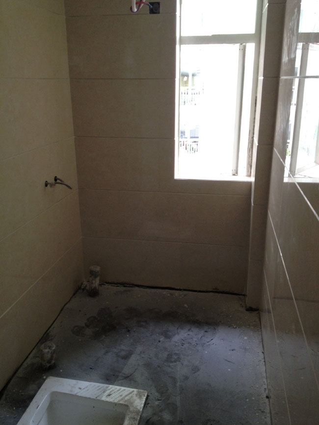 卫生间贴完墙砖,地面磁砖及冲凉区大理石正等待铺贴