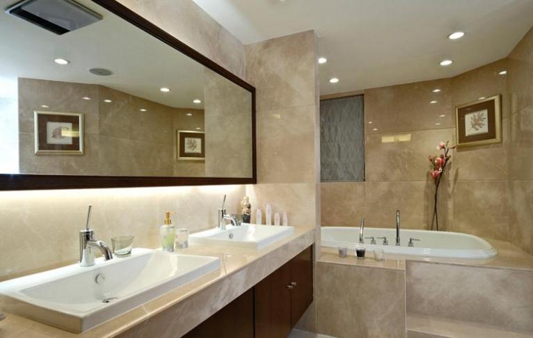 4、浴室卫生器具的安装位置要正确,器具上沿要水平。浴室电器应选择有品牌且防水性能较好的产品,如长期在潮湿的环境下使用的沐浴暖灯或浴霸,外壳应由不锈钢制成,防腐性能要好,而且带防水电源开关、电缆及插头。