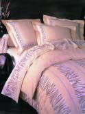 布艺的空间 床上用品――从材质上看纯棉制品还是占据主流;从花色上看典雅简洁的纯色、精细刺绣、波状条纹、几何图案、单花团饰较为受欢迎;从搭配上看同色系的三件套、四件套至而七件套都颇受青睐;从种类上看,除了一般的春秋被、羽绒被外,秋冬季也推出了棉毯、舒抚毯一类新品。
