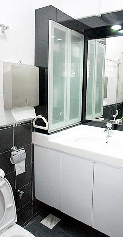 考虑到访客的需要,主人在浴室安置了纸巾固定器。