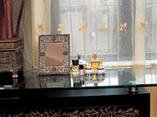 夜色降临以后,水晶灯点亮,整座房子显得异常宁静。沿着窄窄的楼梯走上去,走到顶楼的阳光房。不远处的高楼映射出成串的光芒,桃红色的垫子显出艳丽的气息,弄堂里穿来隐隐约约的爵士乐声。此时此刻,你会觉得:这就是上海的新花样年华。