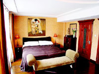 二楼主卧室呈现出时尚经典的设计风格,温暖的红色为房间的主色调,包括家具、 窗帘 、地板、饰品都统一在一种温馨的色系当中,使整个卧室柔和浪漫而不失高贵。