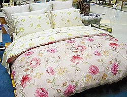 另外,如今的被套不仅是一个用布缝制的大口袋,它们有的在内层缝有薄薄的棉絮,使它在初秋展开即是一床适宜的薄被。到了冬天,只需填充厚棉胎或羽绒胆就是一床暖被了。一张被子四季用,真是方便又实用。这种被套可直接机洗,不易变形,省去不少麻烦。
