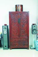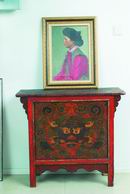 李先生夫妇以自我风格构筑的品位家居,他们林林总总的艺术收藏品及旧家具可谓功不可没。其中一幅幅的画作、明晚期的红漆双顶箱柜、清中期核桃木雕花柜(被主人用来收纳),更是他们的得意战利品。为了方便打理,李分别把心头好搁在柜子上和条案下,随性得来又不见杂乱,正是他们所提倡的“自我风格”。