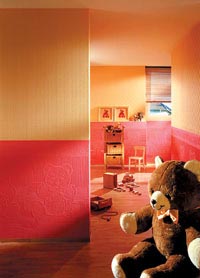 介于壁纸和涂料之间的瑞宝墙基布,将墙纸的立体化推向极致。作为一种“墙涂料伴侣”,墙基布不但有丰富的肌理,而且可以配合墙漆,展示出独特的三维立体效果,从而完全脱离了传统墙面简单的色彩搭配,更为喜爱自己动手的业主们增添了许多DIY的乐趣与空间。