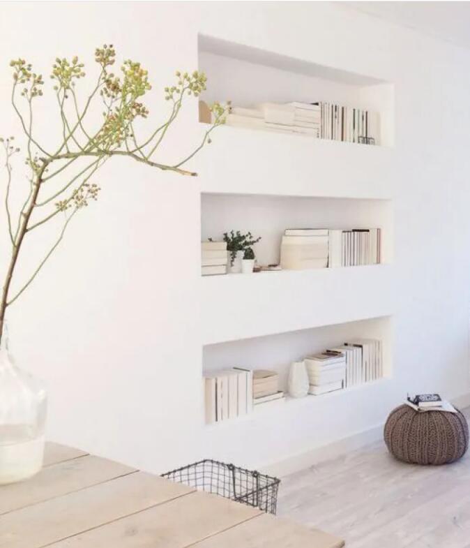 壁龛,即在墙上凿洞,真正利用墙空间,可以说是墙上最真实的存储~而且美观实用丰富空间层次感。