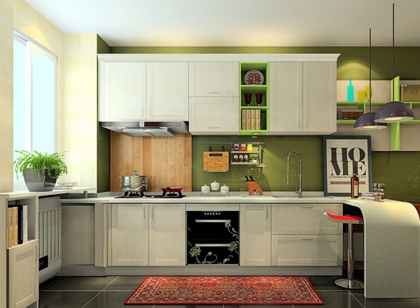 3. 有三种常见的橱柜布局,一字设计,L型设计和U类型设计。选择什么样的橱柜一般取决于不同厨房的具体情况。此外,橱柜的高度和其他数据并不是一组绝对确定的值。只有根据厨房经常使用者的身高和手臂长度,才能使厨房的使用更加人性化和舒适。