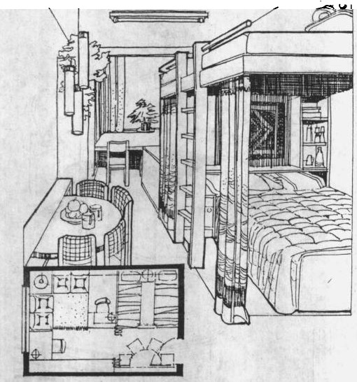 总之,床及睡眠区城的设置和划分应根据面积大小、通风温湿等制约因素,综合权衡,