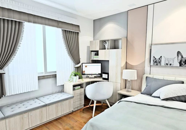 凸窗的设计取决于家庭的实际需要,而不是盲目的装饰,比如放一张沙发和两个袋子,形成一个喝茶和下棋的娱乐空间。如果家里没有足够的存储空间,你可以考虑漂浮在地板上。在窗口定制一个平台,下面的隐藏储物柜,也可以作为休闲空间,使其定制舒适,需要更换空间时可以占用平台,使用非常灵活。