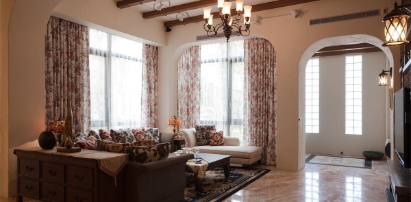 1.美国家庭通常有很大的空间,喜欢在墙上贴一些表达欲望强烈的壁纸,油漆颜色饱满。通常在简单甚至略粗糙的纹理形状上绘制丰富多彩的大型花卉图案,或在纯木或纯石地面上与墨西哥、尼泊尔或山东的三两块纯羊毛手工地毯,整体装饰自然纯净的氛围。