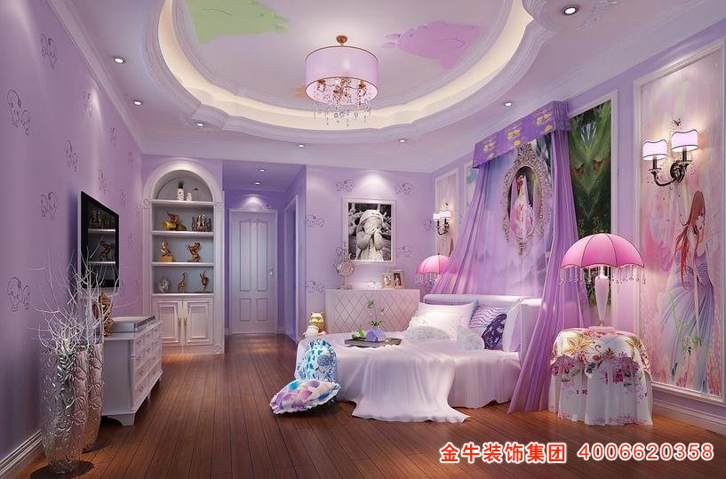 儿童房欧式装修需要考虑整体规划,必须要考虑到孩子游戏和储藏间的功能,墙面最好不要像平时那样装饰的属于白色,要根据孩子们的爱好去充分考虑到整个房子的布局模式,将其表现的有童趣感,让房间有一个能够收纳玩具或者是较为环保的木质橱柜,这对于孩子来说,才是比较有用的。